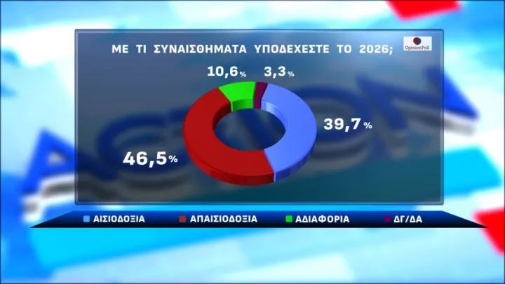Για την πλειονότητα της ελληνικής κοινωνίας, ένα σημαντικό ποσοστό - το 39,7% - δηλώνει ότι αισιοδοξεί για το 2026, ενώ το 46,5% δηλώνει απαισιοδοξία.