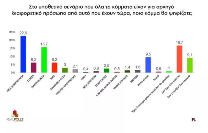 Η δημοσκόπηση καταγράφει επίσης την πρόθεση ψήφου σε υποθετικό σενάριο αλλαγής αρχηγών.