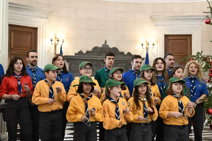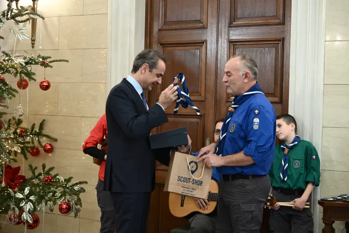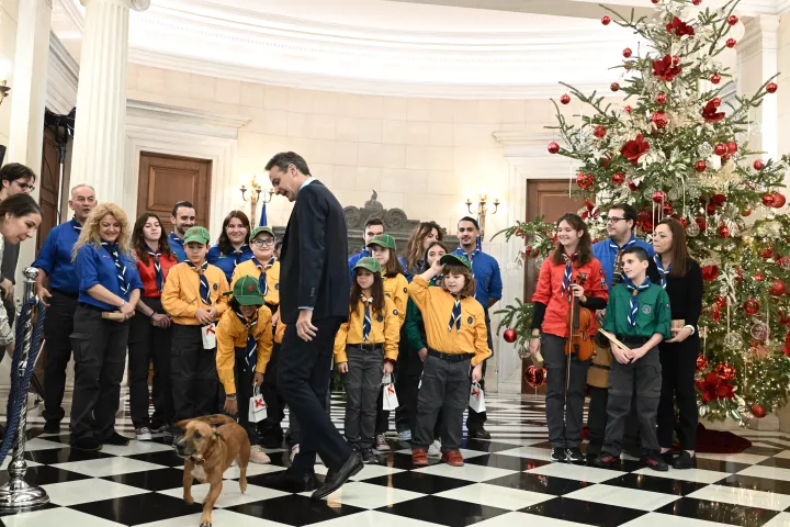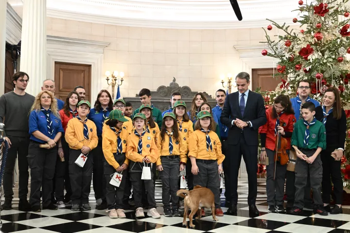 Τα κάλαντα της Πρωτοχρονιάς από το Σώμα Ελλήνων Προσκόπων άκουσε το πρωί της παραμονής της Πρωτοχρονιάς ο πρωθυπουργός Κυριάκος Μητσοτάκης στο Μέγαρο Μαξίμου.