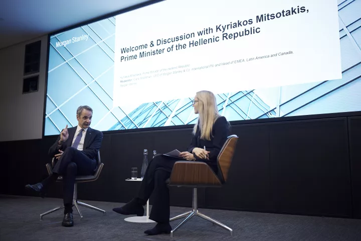 «Η Ελλάδα τηρεί τις δημοσιονομικές της δεσμεύσεις, επιτυγχάνοντας σημαντικά πρωτογενή πλεονάσματα, αλλά διαθέτει επίσης δημοσιονομικό περιθώριο για να στηρίξει τα νοικοκυριά, μέσω φορολογικών ελαφρύνσεων, και να συνεχίσει να προωθεί μία ατζέντα που ευνοεί την ανάπτυξη», τόνισε ο πρωθυπουργός σε συζήτηση, στο πλαίσιο του Συνεδρίου, με την Clare Woodman, επικεφαλής της Morgan Stanley για την Ευρώπη, τη Μέση Ανατολή και την Αφρική (ΕΜΕΑ), τη Λατινική Αμερική και τον Καναδά, και Διευθύνουσα Σύμβουλο της Morgan Stanley & Co. International., υπογραμμίζοντας ότι «θα ήθελα να επισημάνω στο ακροατήριό μας ότι οι εκλογές θα λάβουν χώρα την άνοιξη του 2027».