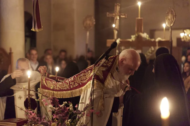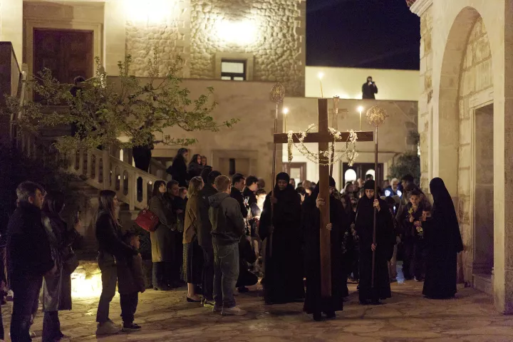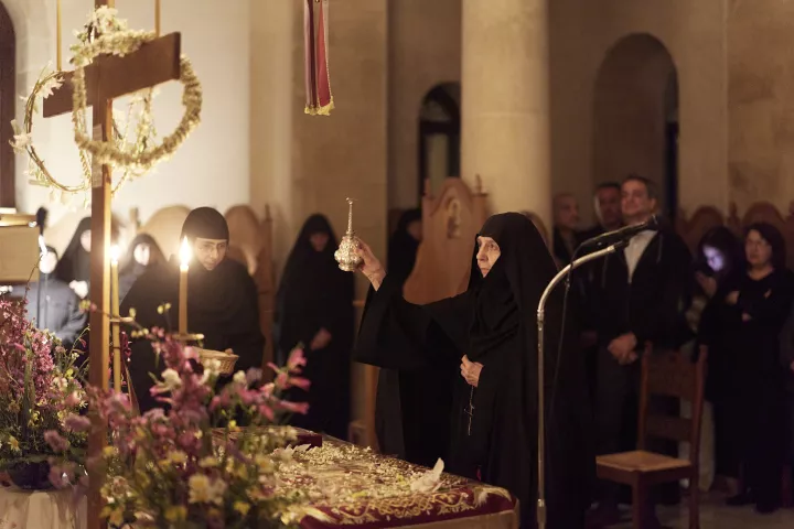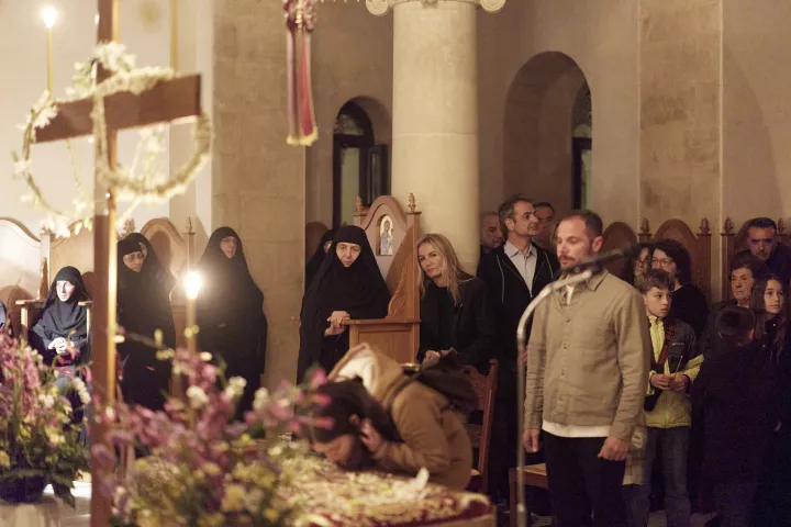 Ο Πρωθυπουργός Κυριάκος Μητσοτάκης, συνοδευόμενος από τη σύζυγό του Μαρέβα Γκραμπόφσκι-Μητσοτάκη, παρακολούθησε την Ακολουθία και Περιφορά του Επιταφίου στην Ιερά Μονή Μεταμορφώσεως του Σωτήρος στα Χανιά.