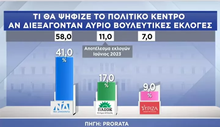Σύμφωνα με τα ευρήματα της εταιρείας, η ΝΔ κυριαρχεί στον χώρο του Κέντρου.