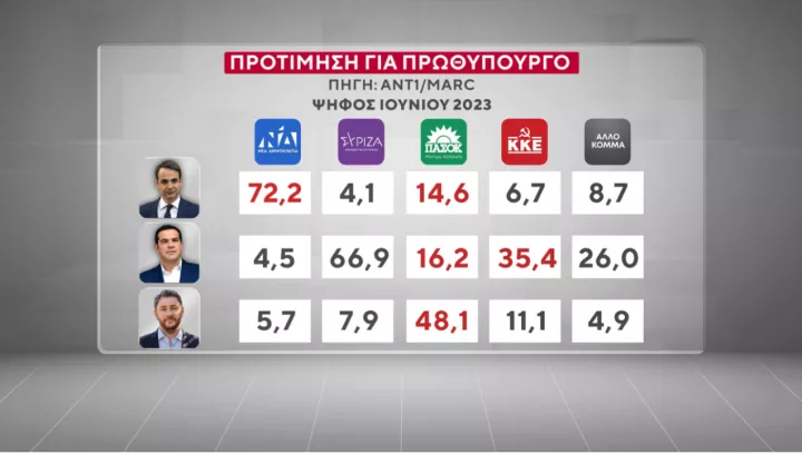 Συγκεκριμένα, ο πρωθυπουργός επιλέγεται από το 14,6% των ψηφοφόρων του ΠΑΣΟΚ στις εκλογές του 2023, από το 8,7% του «άλλου κόμματος», από το 6,7% των ψηφοφόρων του ΚΚΕ, αλλά και από το 4,1% των ψηφοφόρων του ΣΥΡΙΖΑ.