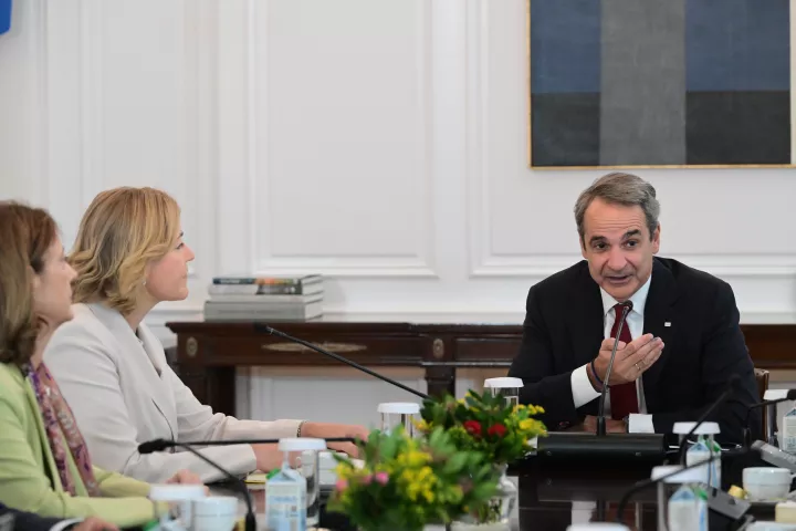 Ο πρωθυπουργός Κυριάκος Μητσοτάκης υποδέχθηκε στο Μέγαρο Μαξίμου την Εκτελεστική Αντιπρόεδρο της Ευρωπαϊκής Επιτροπής αρμόδια για την Τεχνολογική Κυριαρχία, την Ασφάλεια και τη Δημοκρατία, Henna Virkkunen, σε μια συνάντηση που επικεντρώθηκε σε κρίσιμα θέματα τεχνολογίας, άμυνας και διαδικτυακής ασφάλειας.