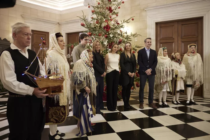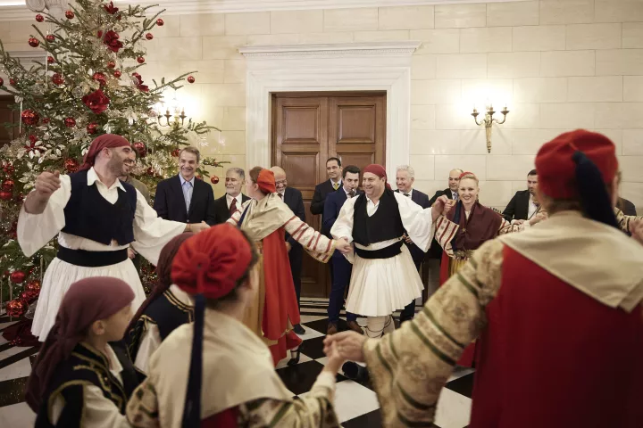 Τα κάλαντα είπαν στον πρωθυπουργό και την οικογένειά του μέλη της Πολιτιστικής Μουσικοχορευτικής Ομάδας Καστελλορίζου, της Πανθρακικής Ομοσπονδίας Νότιας Ελλάδoς και της Παναρκαδικής Ομοσπονδίας Ελλάδος.