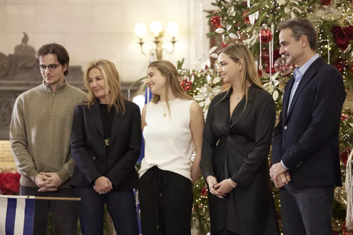 Χριστουγεννιάτικα κάλαντα από διάφορες περιοχές της χώρας άκουσαν σήμερα στο Μέγαρο Μαξίμου ο πρωθυπουργός Κυριάκος Μητσοτάκης, η σύζυγός του Μαρέβα Γκραμπόφσκι - Μητσοτάκη και τα παιδιά τους Σοφία, Κωνσταντίνος και Δάφνη.
