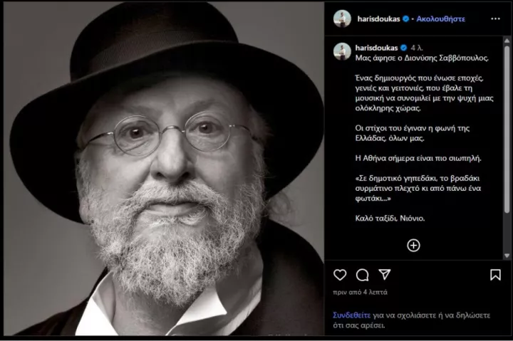 Ο δήμαρχος της Αθήνας Χάρης Δούκας ανέφερε σε ανάρτησή του: «Μας άφησε ο Διονύσης Σαββόπουλος. Ένας δημιουργός που ένωσε εποχές, γενιές και γειτονιές, που έβαλε τη μουσική να συνομιλεί με την ψυχή μιας ολόκληρης χώρας.