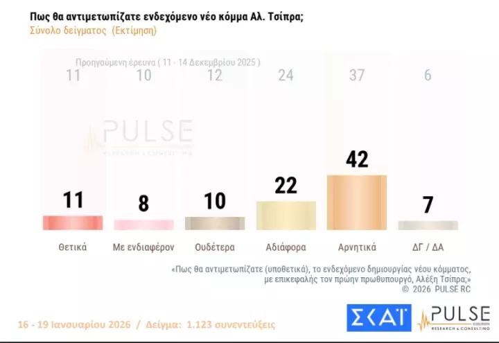 Σύμφωνα με τα αποτελέσματα της έρευνας, η οποία διενεργήθηκε σε δείγμα 1.123 πολιτών, στο διάστημα 16-19 Ιανουαρίου, το υπό κατασκευή κόμμα που δείχνει να συγκεντρώνει το μεγαλύτερο ποσοστό αποδοχής, είναι η κίνηση της Μαρίας Καρυστιανού, με το «κόμμα» του πρώην πρωθυπουργού, Αλέξη Τσίπρα να ακολουθεί και το «κόμμα» του επίσης πρώην πρωθυπουργού, Αντώνη Σαμαρά να έπεται.
