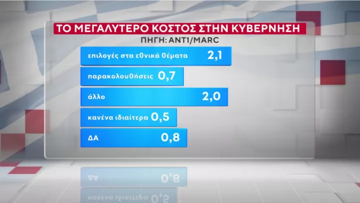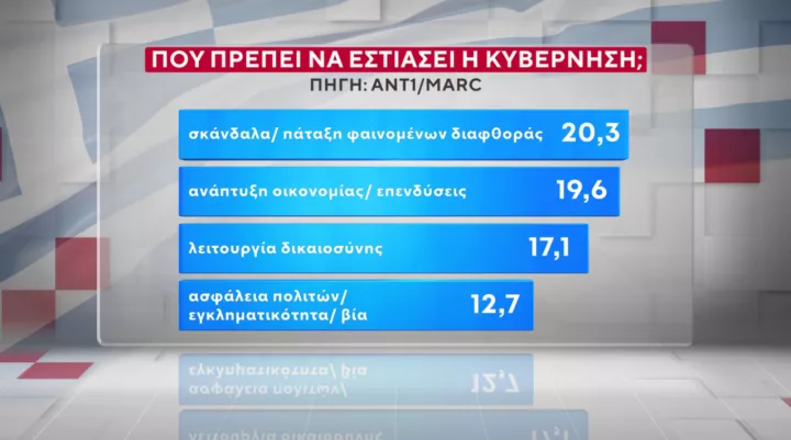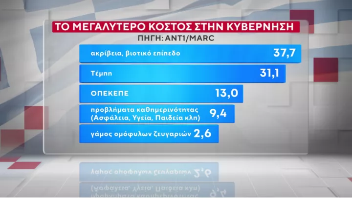 Σχετικά με τον τομέα που πρέπει να εστιάσει η κυβέρνηση, αυτός είναι η καταπολέμηση της ακρίβειας με 67,7%, ενώ ακολουθεί ο τομέας της υγείας με 42,6%. Μάλιστα, η ακρίβεια είναι ο τομέας που κοστίζει περισσότερο στην κυβέρνηση με ποσοστό 37,7%. Ακολουθούν τα Τέμπη με 31,1%.