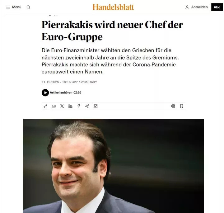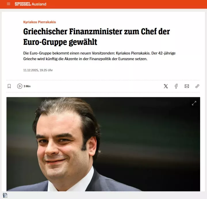 Μία ημέρα μετά την ιστορική νίκη του Έλληνα υπουργού Οικονομικών Κυριάκου Πιερρακάκη στην εκλογή για την προεδρία του Eurogroup, τα διεθνή μέσα ενημέρωσης σπεύδουν να αναγνωρίσουν την σημασία της, τονίζοντας ότι η Ελλάδα επιστρέφει στο επίκεντρο της ευρωπαϊκής οικονομικής πολιτικής μετά από μια μακρά περίοδο κρίσης.