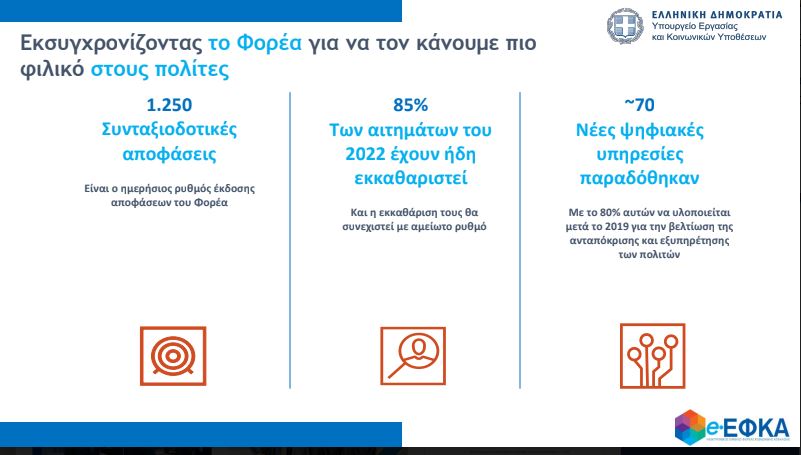 · Ο e-ΕΦΚΑ εκδίδει πλέον πάνω 1.250 συντάξεις την ημέρα, ενώ το 2019 δεν ξεπερνούσε τις 500 απονομές.