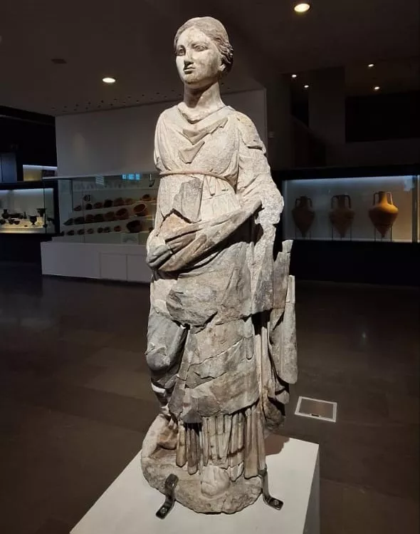 Γυναικείο άγαλμα που εκτίθεται για πρώτη φορά στο Αρχαιολογικό Μουσείο Πέλλας. Πηγή φωτ.: ΥΠΠΟ