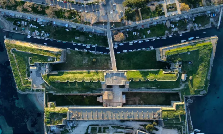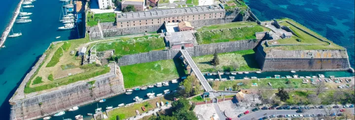 Κεντρική φωτ.: Άποψη του Φρουρίου και της υγρής τάφρου στην Κέρκυρα. Πηγή φωτ.: ΥΠΠΟ