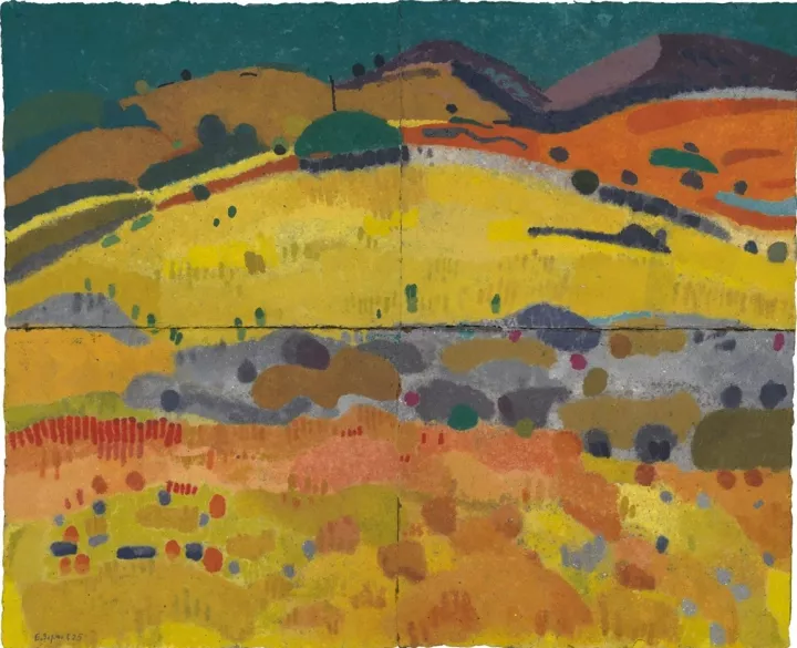 Το βουνό επιστρέφει. Πάντα εκεί, βουβό, σαν τοτέμ. Η κορυφή του άλλοτε σκεπάζει, άλλοτε βαραίνει. Το βουνό που μεγάλωσε τον ζωγράφο, που κράτησε τις μνήμες και τις πληγές, γίνεται τώρα η σκηνή της ζωγραφικής του. Είναι η επιφάνεια όπου το χρώμα και η μνήμη συναντιούνται. Είναι το σύνορο και το κάλεσμα, η απειλή και η θαλπωρή.
