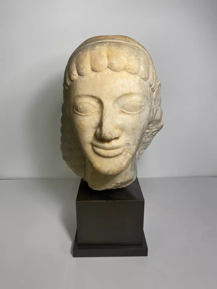 Μαρμάρινη κεφαλή κούρου. Ύψος 30 εκ. Περί τα μέσα του 6ου αι. π.Χ. Πηγή φωτ.: ΥΠΠΟ