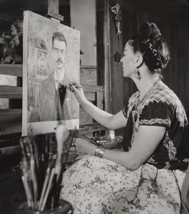 Η Φρίντα Κάλο ζωγραφίζει το «Πορτρέτο του πατέρα μου, Γκιγιέρμο Κάλο». Φωτογραφία της Γκιζέλ Φρόυντ, 1951. Diego Rivera & Frida Kahlo Archives. Bank of Mexico, Fiduciary in the Diego Rivera and Frida Kahlo Museum Trust