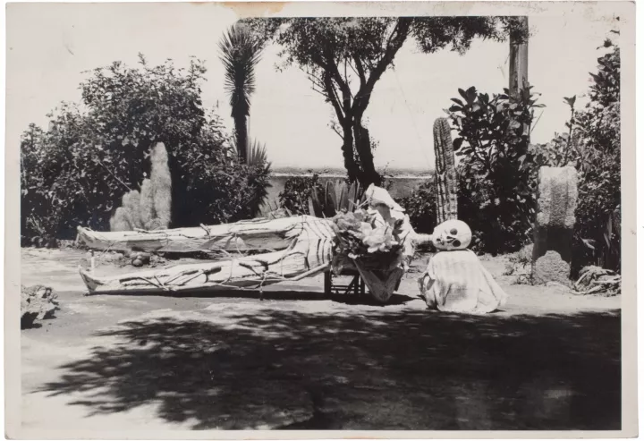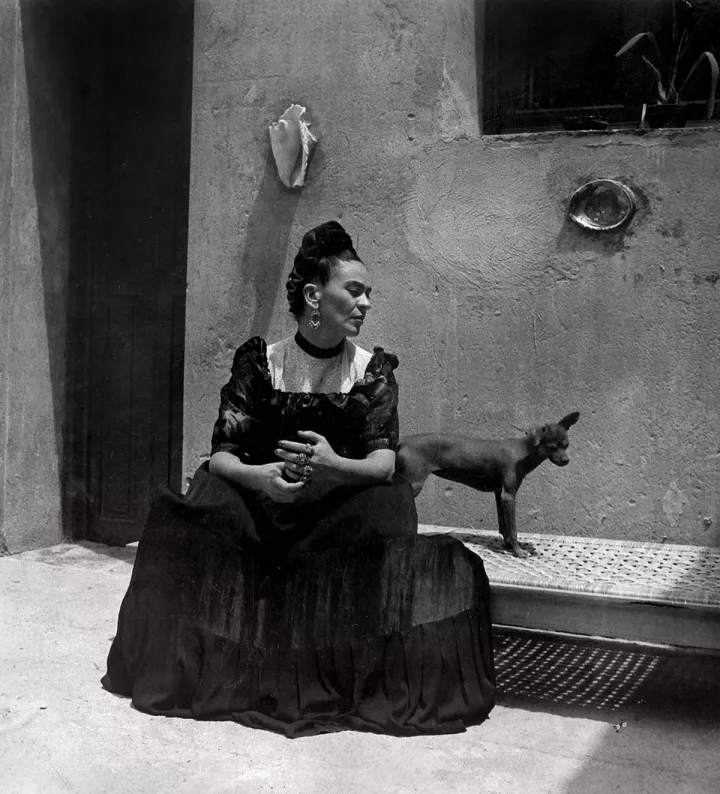 Η Φρίντα Κάλο με ένα xoloitzcuintle στο Μπλε Σπίτι (Casa Azul). Φωτογραφία της Λόλα Αλβαρέζ Μπράβο, περ. 1944. Diego Rivera & Frida Kahlo Archives. Bank of Mexico, Fiduciary in the Diego Rivera and Frida Kahlo Museum Trust