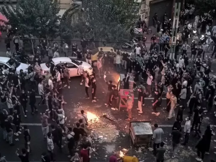Ιρανοί διαμαρτύρονται για τον θάνατο της 22χρονης Μαχσά Αμινί, η οποία συνελήφθη από την αστυνομία ηθών, στην Τεχεράνη, στις 20 Σεπτεμβρίου 2022. Η φωτογραφία τραβήχτηκε από άτομο που δεν εργάζεται για το Associated Press και αποκτήθηκε από το AP εκτός Ιράν (AP Photo/ File)
