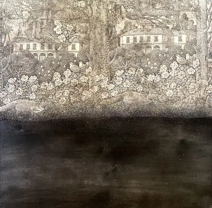 Ο Κ. Πάτσιος, κοιτά την πόλη όχι ως καταφύγιο πολιτισμού αλλά ως μια εύθραυστη μεμβράνη ανάμεσα σε αυτό που θεωρούμε δικό μας και σε αυτό που προσποιούμαστε ότι δεν υπάρχει. «Οι σύγχρονες πόλεις μεταμορφώνονται στα έργα μου σε τοπία που αποτυπώνουν τη σχέση με την άγρια ζωή – αυτήν που φιλοξενούν αλλά και αυτήν που αποκλείουν», σημειώνει. Η νέα του σειρά ξεκινά από μια σχεδόν επιστημονική διάθεση καταγραφής της βιοποικιλότητας, όμως καταλήγει σε κάτι πιο ονειρικό: ελέφαντες, λιοντάρια, νυχτοπεταλούδες, σπουργίτια και άλλα πλάσματα διασχίζουν τους καμβάδες του σαν άγρυπνοι μάρτυρες ενός κόσμου όπου η φύση και η πόλη δεν είναι αντίπαλοι· είναι συγκάτοικοι σε μια σχέση ανοχής και λήθης.