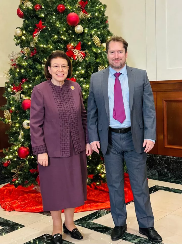 Η yπουργός Πολιτισμού Λίνα Μενδώνη με τον ανώτερο αξιωματούχο του State Department για θέματα Πολιτισμού και Εκπαίδευσης Δρ Darren Beattie. Πηγή φωτ.: ΥΠΠΟ