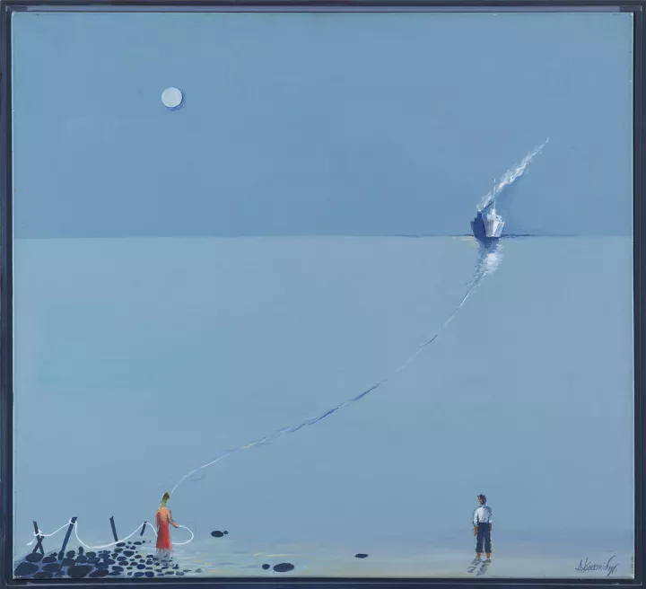 Δημοσθένης Κοκκινίδης, «Το πλοίο της γραμμής ή Άφιξη», ακρυλικό σε καμβά, 110x120 εκ., 2004-2010