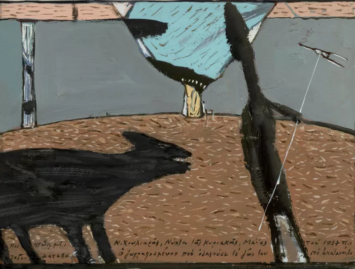 Κεντρική φωτ.: Χωρίς τίτλο έργο (ακρυλικό σε πισσόχαρτο)του Νίκου Χουλιαρά