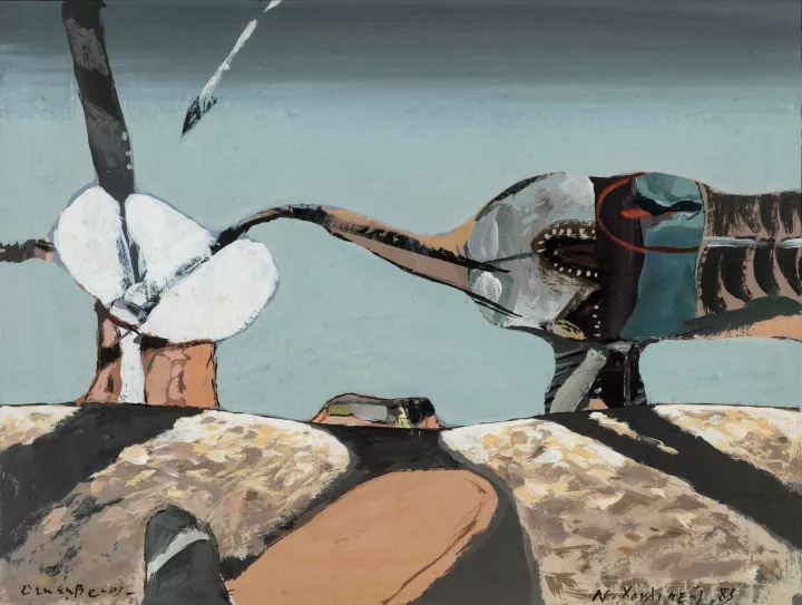 Νίκος Χουλιαράς, «Τοπίο που αυτοϋπονομεύεται» (ακρυλικό σε χαρτόνι)