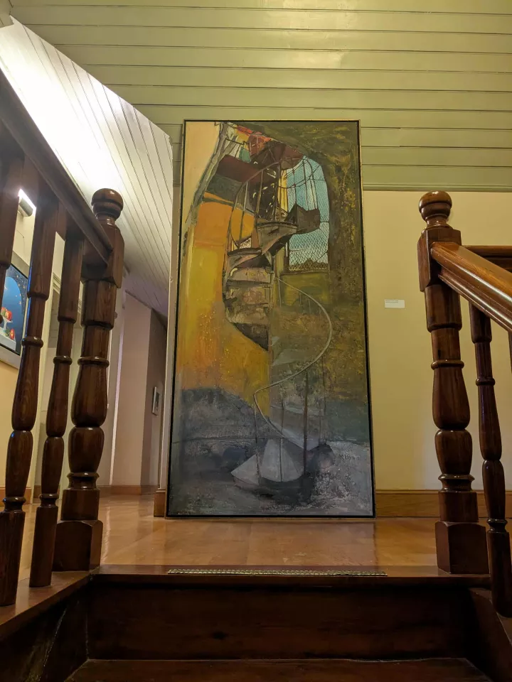 Ανεβαίνοντας την ξύλινη σκάλα για τον τελευταίο όροφο, προβάλλει η εντυπωσιακή «Σκάλα» της Μαρίας Φιλοπούλου από την πρώιμη δουλειά της @Liberal