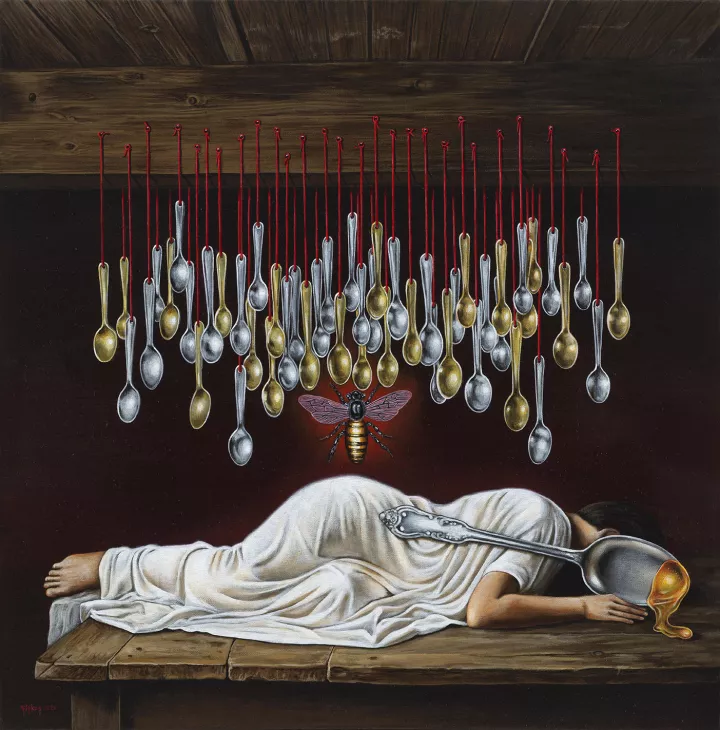 Νίκος Σίσκος, «Milk and hone/ Μέλι - γάλα», 2025, ακρυλικά σε καμβά, 60x60 cm