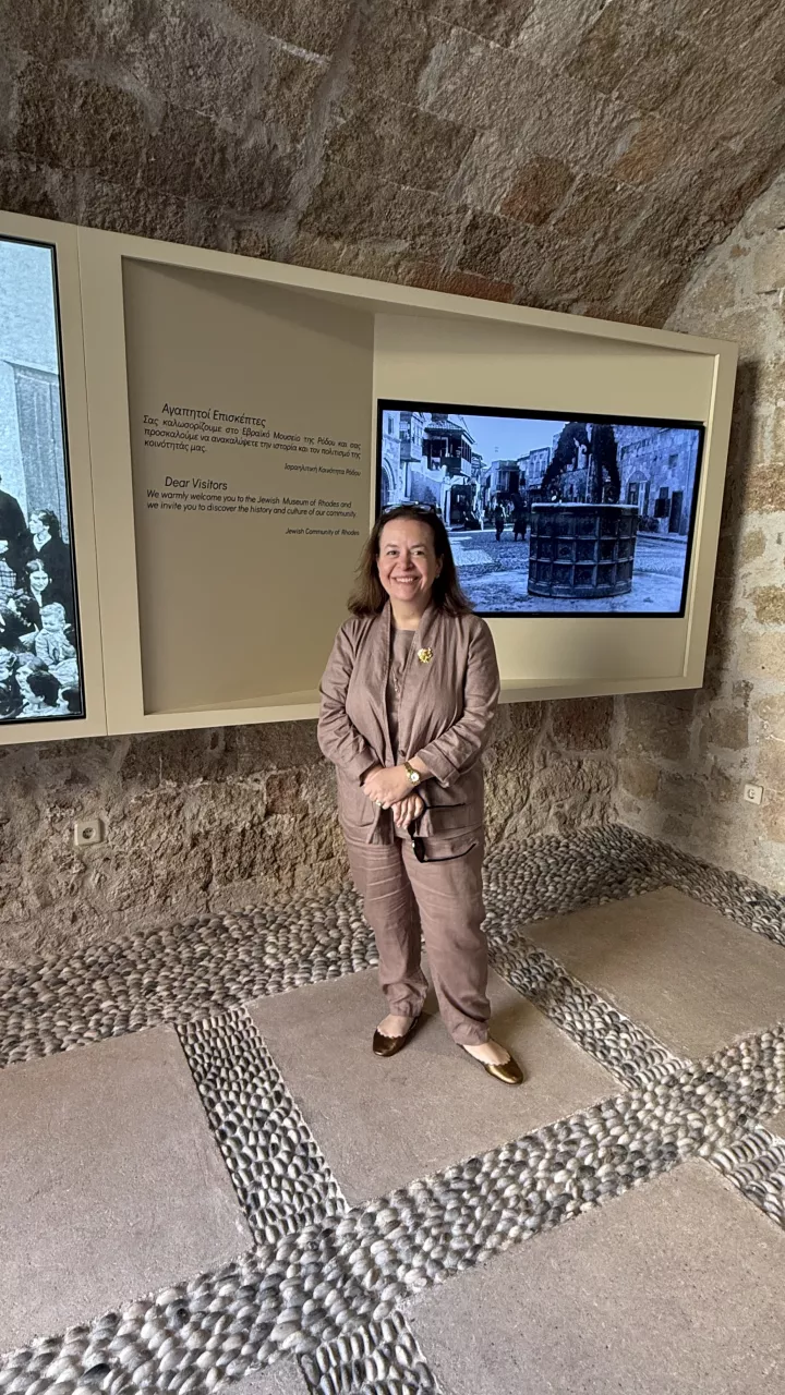 Αναφερόμενη στη μακραίωνη παρουσία των Εβραίων στη Ρόδο, σημείωσε ότι «η εβραϊκή παρουσία στη Ρόδο έχει ιστορία άνω των 2.000 ετών. Μια κοινότητα που άφησε βαθύ αποτύπωμα στην οικονομική και πολιτιστική ζωή του νησιού». Ωστόσο, όπως υπενθύμισε, «τον Ιούλιο του 1944, σχεδόν ολόκληρη η εβραϊκή κοινότητα της Ρόδου εκτοπίστηκε στο 'Αουσβιτς. Λιγότεροι από 160 άνθρωποι επέστρεψαν».