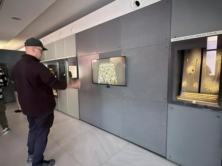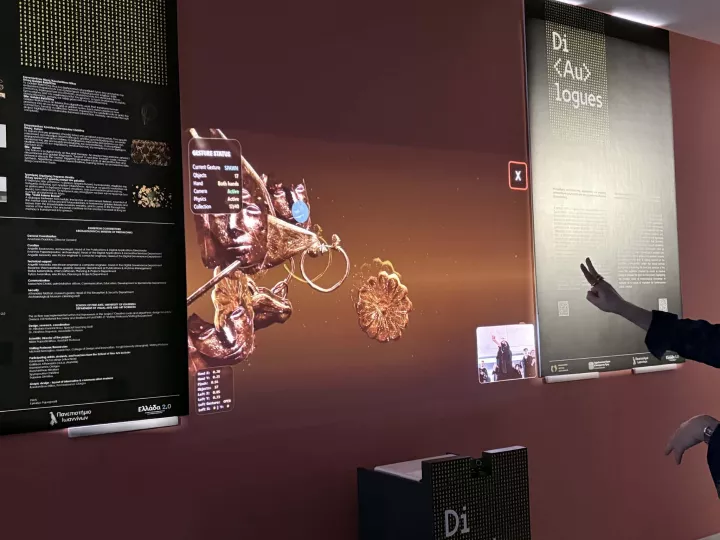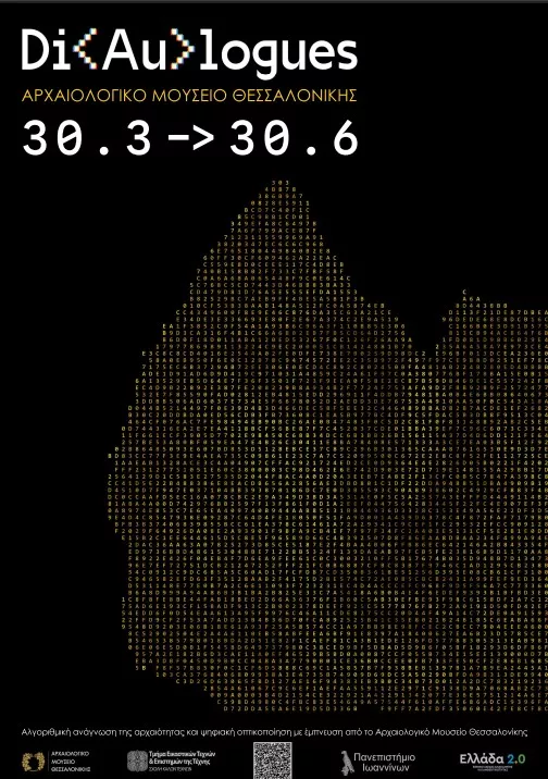 Αυτές οι δυνατότητες ξεδιπλώνονται στο Αρχαιολογικό Μουσείο Θεσσαλονίκης, στον χώρο της μόνιμης έκθεσης «Ο χρυσός των Μακεδόνων», όπου φιλοξενείται η περιοδική έκθεση «Dilogues». Πρόκειται για μια συνεργασία της Σχολής Καλών Τεχνών του Πανεπιστημίου Ιωαννίνων και του Τμήματος Εικαστικών Τεχνών και Επιστημών της Τέχνης με το μουσείο, στο πλαίσιο του ερευνητικού έργου «Αλγοριθμική ανάγνωση της αρχαιότητας: Ψηφιακή οπτικοποίηση με έμπνευση από το Αρχαιολογικό Μουσείο Θεσσαλονίκης».