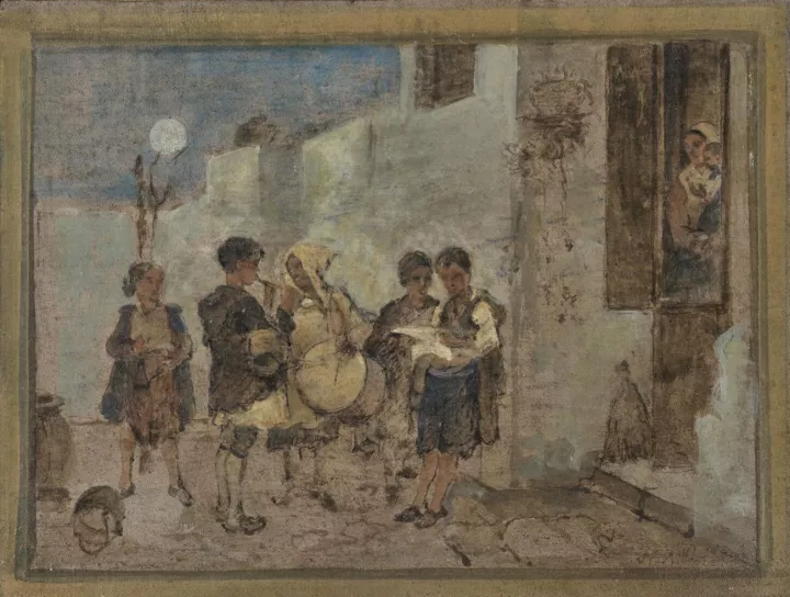 Νικηφόρος Λύτρας, Σπουδή για τον πίνακα «Κάλαντα» (λάδι σε χαρτόνι, 17,3 x 22,5 εκ.). Δωρεά Υπουργείου Πολιτισμού και Επιστημών. Πηγή φωτ.: Facebook/ Εθνική Πινακοθήκη - Μουσείο Αλεξάνδρου Σούτσου / National Gallery