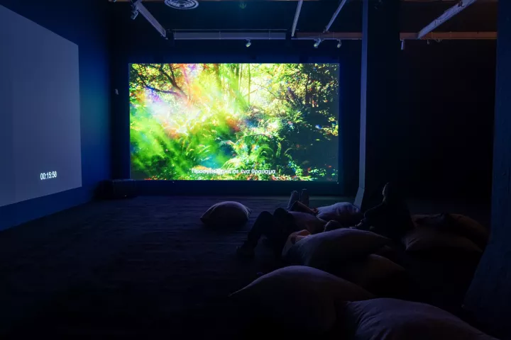 Λήψη του χώρου όπου προβάλλονται τα βίντεο του Ben Rivers. Πηγή φωτ.: Facebook/ MOMus - Πειραματικό Κέντρο Τεχνών / Experimental Center for the Arts