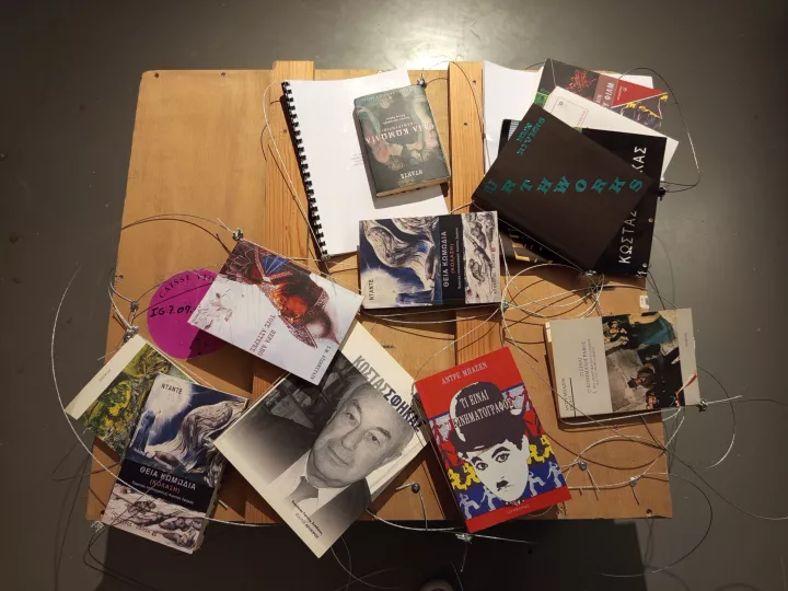 Λήψη μέρους της έκθεσης «Ανατροπή (η επιστημονική φαντασία σαν αλλαγή)» που αφορά στον Κώστα Σφήκα. Πηγή φωτ.: Facebook/ MOMus - Πειραματικό Κέντρο Τεχνών / Experimental Center for the Arts
