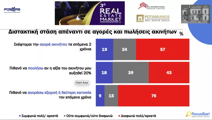 Η ζήτηση δεν έχει εξαφανιστεί απεναντίας υπάρχει και είναι ενεργή απλά δεν εκφράζεται με τον τρόπο που θα περίμενε κανείς. Αν και ακούγεται ως ατάκα τηλεοπτικής εκπομπής, ουσιαστικά έχει μεγάλη δόση αλήθειας καθώς από τη στατιστική έρευνα προκύπτει ότι η πρόθεση για άμεσες κινήσεις παραμένει περιορισμένη αλλά το ενδιαφέρον είναι ζωηρό. Η πλειοψηφία των πολιτών δηλώνει ότι δεν σκοπεύει να αγοράσει ακίνητο στο άμεσο μέλλον, ενώ ακόμη χαμηλότερη είναι η πρόθεση για αγορά δεύτερης κατοικίας. Την ίδια στιγμή, ακόμη και η σκέψη για πώληση παραμένει επιφυλακτική, ακόμη και σε σενάρια σημαντικής αύξησης της αξίας. Μόλις το 18-19% εξετάζει την αγορά ακινήτου τα επόμενα 2 έτη ή και την πώληση αν υπάρχει αύξηση της αξίας κατά 20%. Για Εξοχική κατοικία μόλις το 9% το σκέφτεται…