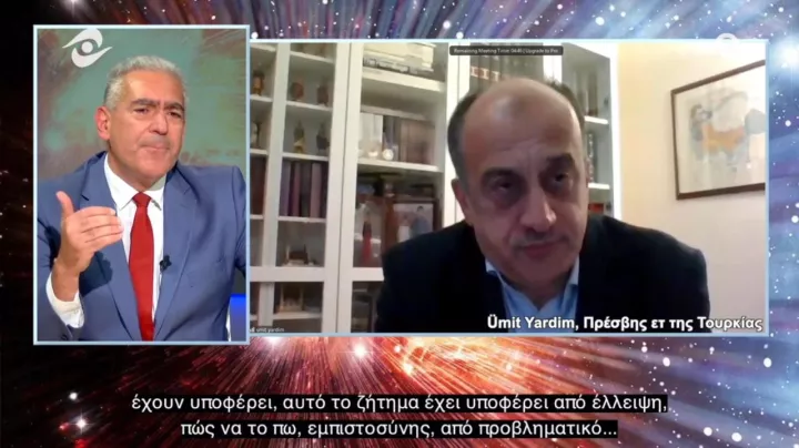 Φ. Κ.: Αγαπητοί φίλοι, καλησπέρα. Θα ήθελα να σας καλωσορίσω σε μια ξεχωριστή συνέντευξη. Μια συνέντευξη με έναν άνθρωπο που έχει αναλάβει πολλές σημαντικές θέσεις στη διπλωματία της γειτονικής χώρας. Ναι, της τουρκικής δημοκρατίας. Μάλιστα, ξεκίνησε την καριέρα του στην Αθήνα. Πριν από δύο δεκαετίες, ήταν γενικός πρόξενος στο προξενείο της Κομοτηνής... Και μετά προχώρησε στην καριέρα του στη Μόσχα, την Τεχεράνη, τη Βιέννη.