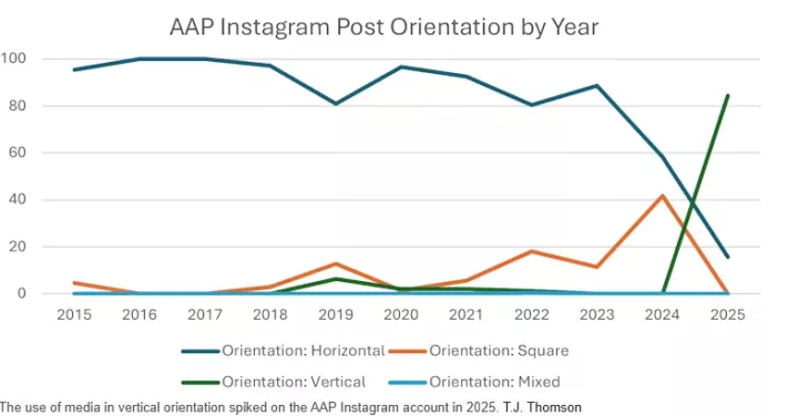 Στον λογαριασμό του AAP, αυτή η μετατόπιση σημειώθηκε τα τελευταία δύο χρόνια, με το 84,4% όλων των αναρτήσεων να έχουν πλέον κάθετο προσανατολισμό.