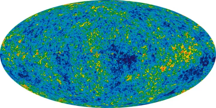 Ένας χάρτης που δημιουργήθηκε από το Wilkinson Microwave Anisotropy Probe της NASA για την ακτινοβολία μικροκυμάτων που εκλύθηκε περίπου 375.000 χρόνια μετά τη γέννηση του σύμπαντος. (NASA/WMAP Science Team)