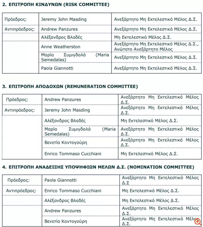 Σε συνέχεια της από 05.12.2025 απόφασης της Έκτακτης Γενικής Συνέλευσης της Τράπεζας σχετικά με το είδος, τη θητεία, τον αριθμό και τις ιδιότητες των μελών της Επιτροπής Ελέγχου, και της από 10.12.2025 απόφασης του Διοικητικού Συμβουλίου περί ορισμού των μελών της, η Επιτροπή Ελέγχου στην από 10.12.2025 συνεδρίασή της, συγκροτήθηκε σε σώμα ως εξής: