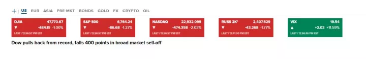 Ο Dow Jones Industrial Average κατέγραψε πτώση 1% στις 47.770,67 μονάδες, υποχωρώντας από το ρεκόρ που είχε σημειώσει κατά την προηγούμενη συνεδρίαση. Απώλειες και για τον S&P 500 στο -1,27% στις 6.764,24 μονάδες, ενώ με αρνητικό πρόσημο κινείται και ο Nasdaq, ο οποίος διαμορφώνεται στο -2,03% και τις 22.932,09 μονάδες.